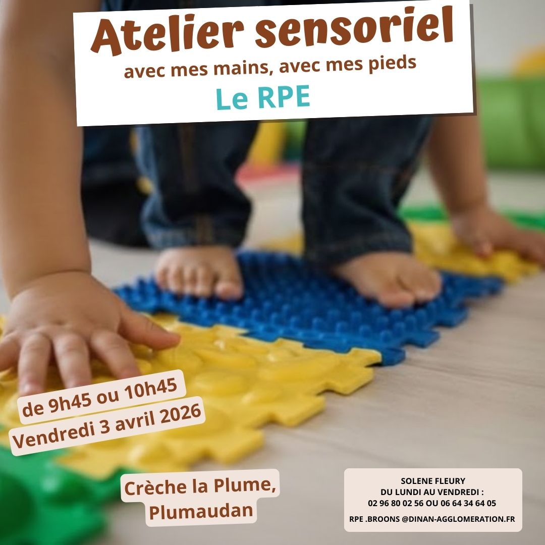 Le RPE vous propose un atelier animé par l’association Ansemble, conçu pour explorer l’environnement à travers le toucher et le mouvement. Différents espaces basés sur la motricité globale et fine permettront aux enfants d’affiner la perception de leurs mains et de leurs pieds. 🌈✨